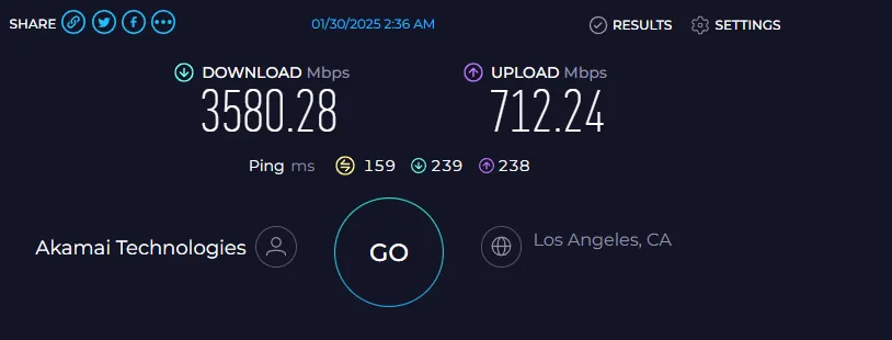 ---------------------------------------------------------------------- CPU Model : AMD EPYC 7713 64-Core Processor CPU Cores : 1 @ 1999.999 MHz CPU Cache : 512 KB AES-NI : ✓ Enabled VM-x/AMD-V : ✗ Disabled Total Disk : 24.5 GB (3.7 GB Used) Total Mem : 957.4 MB (155.4 MB Used) Total Swap : 512.0 MB (5.0 MB Used) System uptime : 0 days, 0 hour 13 min Load average : 1.31, 0.75, 0.32 OS : Ubuntu 22.04.5 LTS Arch : x86_64 (64 Bit) Kernel : 5.15.0-130-generic TCP CC : cubic Virtualization : KVM IPv4/IPv6 : ✓ Online / ✓ Online Organization : AS63949 Akamai Connected Cloud Location : Tokyo / JP Region : Tokyo ---------------------------------------------------------------------- I/O Speed(1st run) : 585 MB/s I/O Speed(2nd run) : 588 MB/s I/O Speed(3rd run) : 581 MB/s I/O Speed(average) : 584.7 MB/s ---------------------------------------------------------------------- Node Name Upload Speed Download Speed Latency Speedtest.net 993.55 Mbps 7194.40 Mbps 0.51 ms Paris, FR 417.42 Mbps 661.78 Mbps 248.79 ms Amsterdam, NL 172.16 Mbps 2079.50 Mbps 220.26 ms Beijing, CN 1105.21 Mbps 1744.06 Mbps 72.63 ms Hong Kong, CN 4.24 Mbps 2.29 Mbps 53.42 ms Singapore, SG 421.17 Mbps 1702.35 Mbps 76.15 ms Tokyo, JP 995.20 Mbps 5965.46 Mbps 1.02 ms
